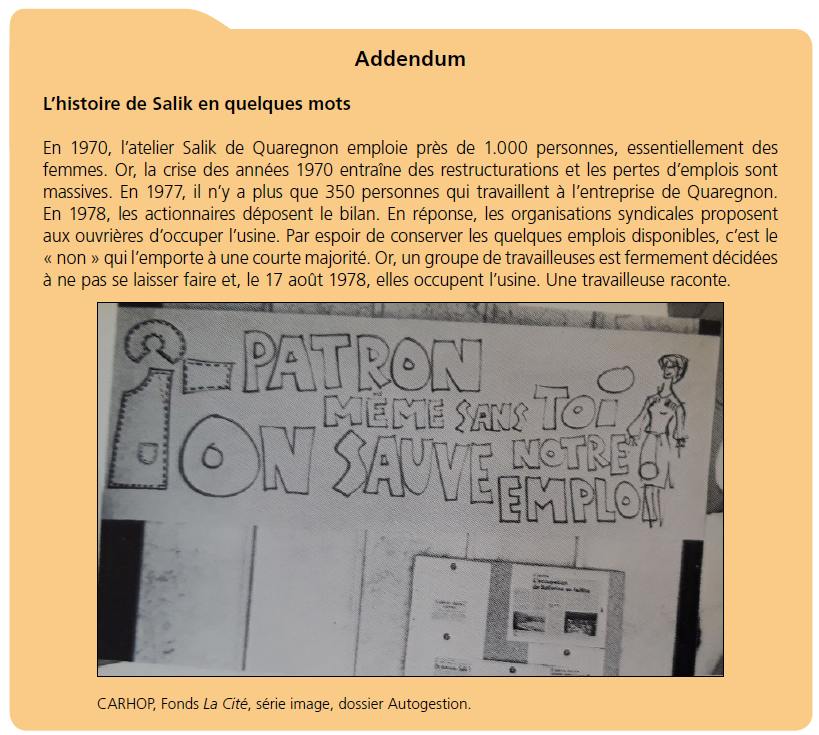 Chanoine, W., Ghaye, E. « Années 1970 : "l'autogestion n'est pas de la tarte mais cela vaut le coup" », Dynamiques. Histoire sociale en revue, n°10 , septembre 2019, mis en ligne le 24 octobre 2019. URL : http://www.carhop.deligraph.info/revuescarhop/