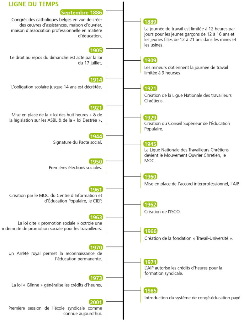 Balkich, A., Lechanteur, A., Ouahabi, S. « Aperçu historique de la conquête d'un temps de formation et l'Institut Supérieur de Culture Ouvrière », Dynamiques. Histoire sociale en revue, n°10 , septembre 2019, mis en ligne le 24 octobre 2019. URL : http://www.carhop.deligraph.info/revuescarhop/