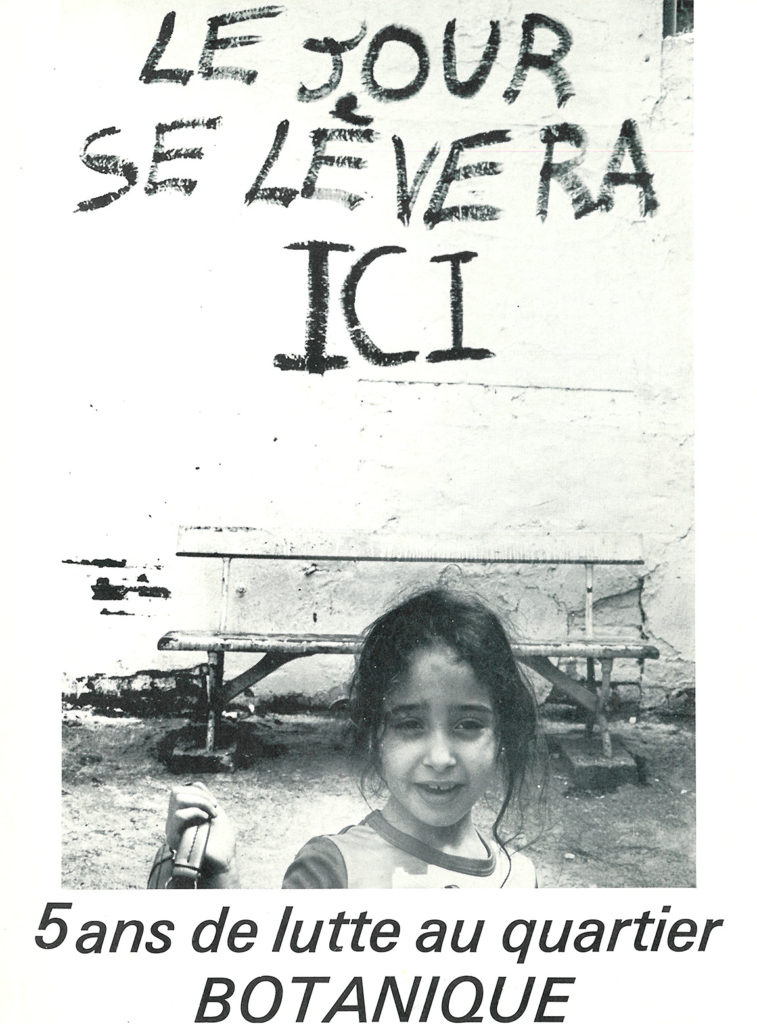 En revanche, elle fait remarquer qu’à ce stade, elle ne fait pas encore le lien entre ce champ social qui se structure, et d’autres mouvements, comme les mouvements ouvriers ou les mouvements citoyens qui portent des revendications plus politiques. Certains militants ou intellectuels, qui habitent le quartier, font quant à eux certainement ce lien, et appellent à cette époque à une vision plus globale. Mais sur le terrain où elle se trouve, rappelle-t-elle, « on était très dans le « que faire ? », « qui suis-je ? » [comme assistante sociale], « pourquoi je le fais ? ». Est-ce que l’institution est adéquate ? Il faut changer l’institution, il faut changer les lois… On avait l’idée du changement, mais dans le sens d’une adaptation aux besoins réels des populations ».