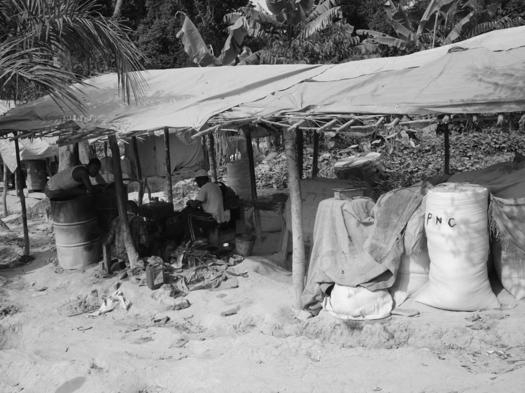 [3] Les dragues sont de petits bateaux de service utilisés dans les rivières pour extraire des matériaux du fond (sable, gravier, etc.) contenant de l’or ou du diamant. Les motopompes servent à évacuer l’eau des galeries dans les mines artisanales.
