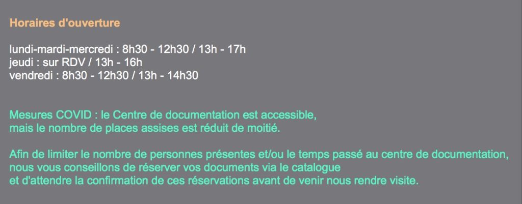 Horaires d’ouverture du centre de documentation adaptés aux mesures Covid-19