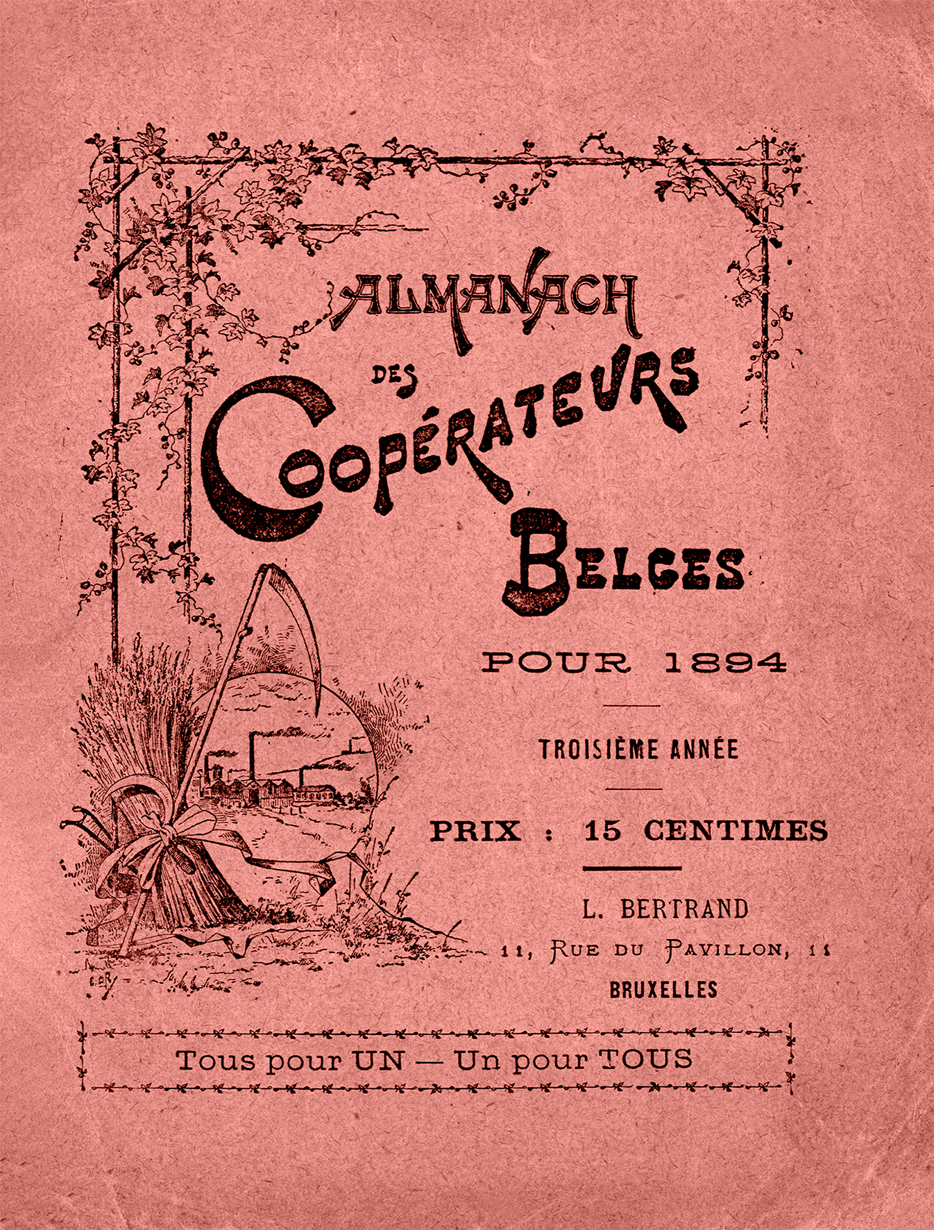 BERTRAND L., Almanach des coopérateurs belges, Bruxelles, 1894, page de couverture (IHOES, coll.).