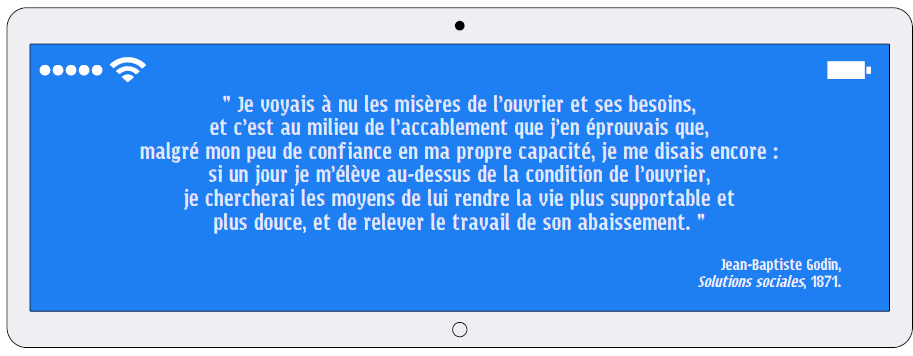 Sans être pauvre, Jean-Baptiste Godin est issu d’un milieu modeste. Découvrant le paupérisme ouvrier au début de son parcours professionnel, il réfléchit à la question sociale et y cherche des solutions. Ses réflexions l’amènent à s’intéresser au socialisme utopique et, plus particulièrement, à Charles Fourier.
