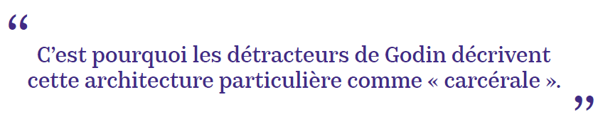 Pourtant, malgré la volonté émancipatrice de ces réalisations, en pratique, les expérimentations de Godin se heurtent à la complexité du réel. En effet, la contrepartie de cette vie communautaire est l’existence d’un perpétuel contrôle social. Tout le monde sait ce que disent et font les autres, ou encore ce qui se passe dans l’appartement d’à côté. La proximité devient alors promiscuité. Les fenêtres des appartements donnent un aperçu des intérieurs, ce qui force l’émulation au sein de la communauté des familistériens. Implicitement, chacun est poussé à entretenir correctement son logement, sans quoi l’individu risque la désapprobation de la communauté. C’est pourquoi les détracteurs de Godin décrivent cette architecture particulière comme « carcérale ». Elle permet une autodiscipline et une responsabilisation des habitants, ce qui rend inutile toute forme de police.