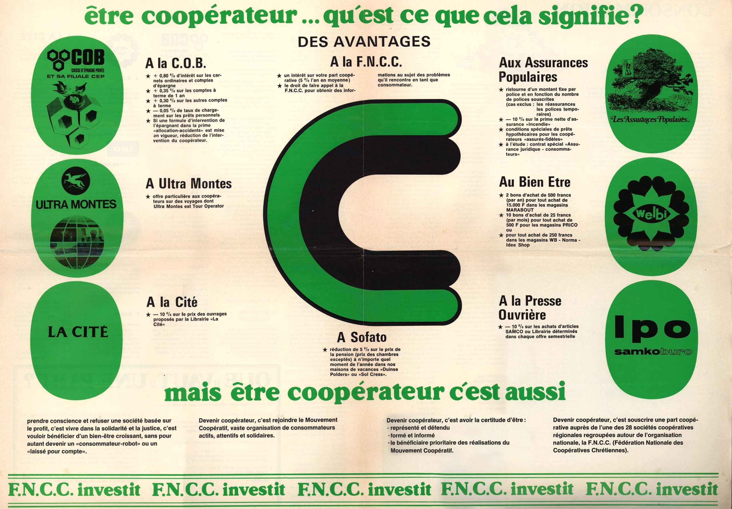 Affiche de promotion de la FNCC, 1975 (Cooperation Nouvelle, septembre 1975, p. 4-5).