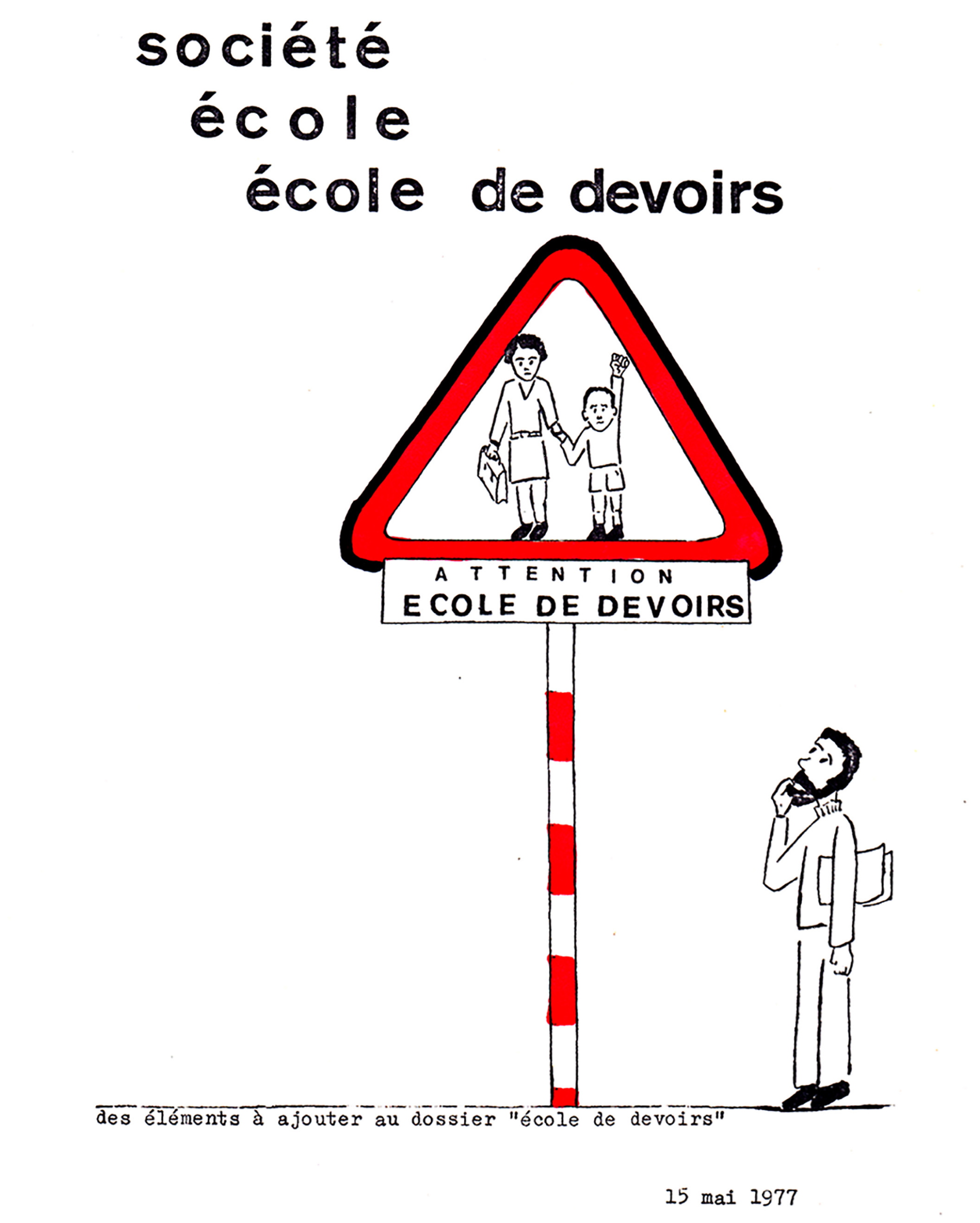 Brochure Société, école, école de devoirs, éditée par Hypothèse d’école, 15 mai 1977 (CARHOP, fonds Rosa Collet, n° 56).
