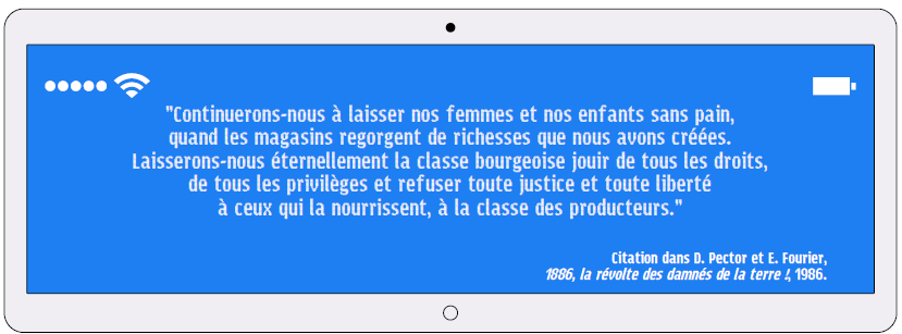 Le premier sujet sur le Familistère de Guise décrit une expérimentation du socialisme utopique. Avec les révoltes de 1886 en Belgique, c’est l’occasion d’avoir un aperçu de son meilleur ennemi, le socialisme scientifique. Contrairement au socialisme utopique, ce courant idéologique ne cherche pas à réformer le système capitaliste. Il prône plutôt son renversement par une révolution ouvrière. Ses penseurs sont à l’origine de la Première Internationale qui cherche à unifier la classe ouvrière par-delà les frontières des nations. Au XIXe siècle, les conditions de vie et de travail difficiles pour les ouvriers et leur famille, leur représentation politique insuffisante et insatisfaisante, ainsi que la création de grands centres urbains et industriels encouragent la diffusion de cette idéologie. Une nuance toutefois pour ce sujet car, si de par leur ampleur et leur violence, les révoltes belges de 1886 rencontrent une forme de conflictualité décrite par certains penseurs du socialisme scientifique, il ne s’agit pas d’une révolution. En effet, à aucun moment les grévistes n’ont cherché à se structurer en groupes politiques au sein des usines afin de prendre le pouvoir, ni à récupérer l’outil, à savoir la machine, pour se réapproprier les moyens de production. On assiste plutôt à la destruction spontanée de ce qui constitue, pour eux, les agents de leur misère.