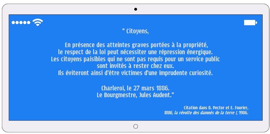 Demol, N., Gerardi, L., « Les révoltes de 1886 et ka grande enquête sur la "question sociale" en Belgique », Dynamiques. Histoire sociale en revue, n°10, septembre 2019, mis en ligne le 24 octobre 2019. URL : http://www.carhop.deligraph.info/revuescarhop/