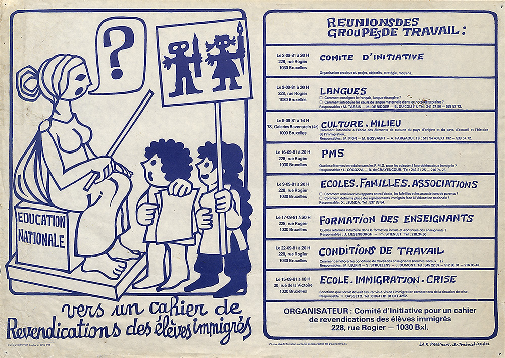 Affiche du Comité d’initiative pour un cahier de revendications des élèves immigrés, Bruxelles, 1980 (CARHOP, collection Affiches, n° 100).