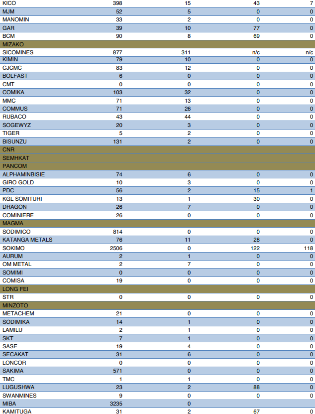 (Twangiza et Namoya dans le tableau précédent), on constate que les chiffres sur le « contenu local » dans le personnel sont très favorables. Ceux-ci datent de 2017 et montrent qu’à l’époque, presque 92 % des employé.e.s étaient des nationaux, soit plus que 96 % des emplois créés dans les sous-traitances.