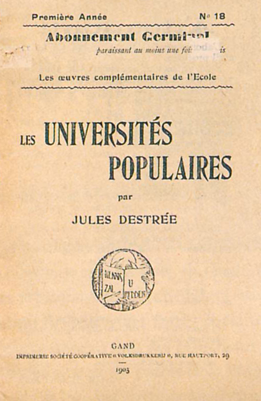 Jules Destrée crée un bulletin L’Université populaire dont le premier numéro paraît le 15 mars 1905 et le dernier numéro, le 1er janvier 1908. Ce bulletin ne concerne pas uniquement l’UP de Marcinelle mais l’ensemble des organisations postscolaires du Hainaut comme l’indique son sous-titre : Bulletin des Universités et Conférences populaires, des Extensions universitaires, des Associations d’anciens élèves, des Amicales et en général des œuvres postscolaires d’enseignement et d’éducation sociale de la province de Hainaut.