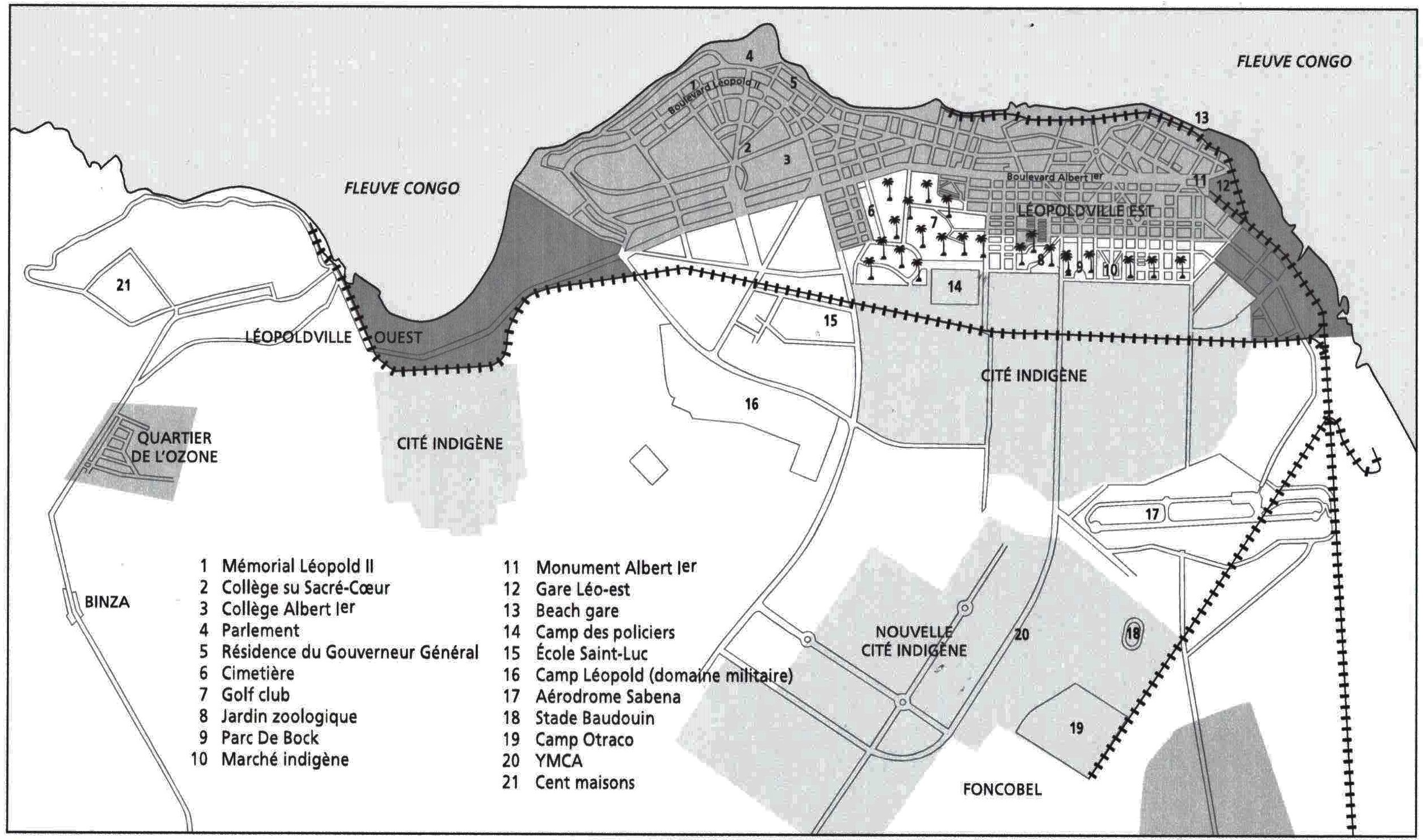 L’essor des villes coloniales, avec un apartheid de fait entre la ville blanche et la cité noire, et l’existence d’une importante population de salariés – avec 40 % des hommes à la fin des années 1950, il s’agit du plus haut pourcentage de l’Afrique subsaharienne –, sont deux caractéristiques essentielles de la colonisation belge.