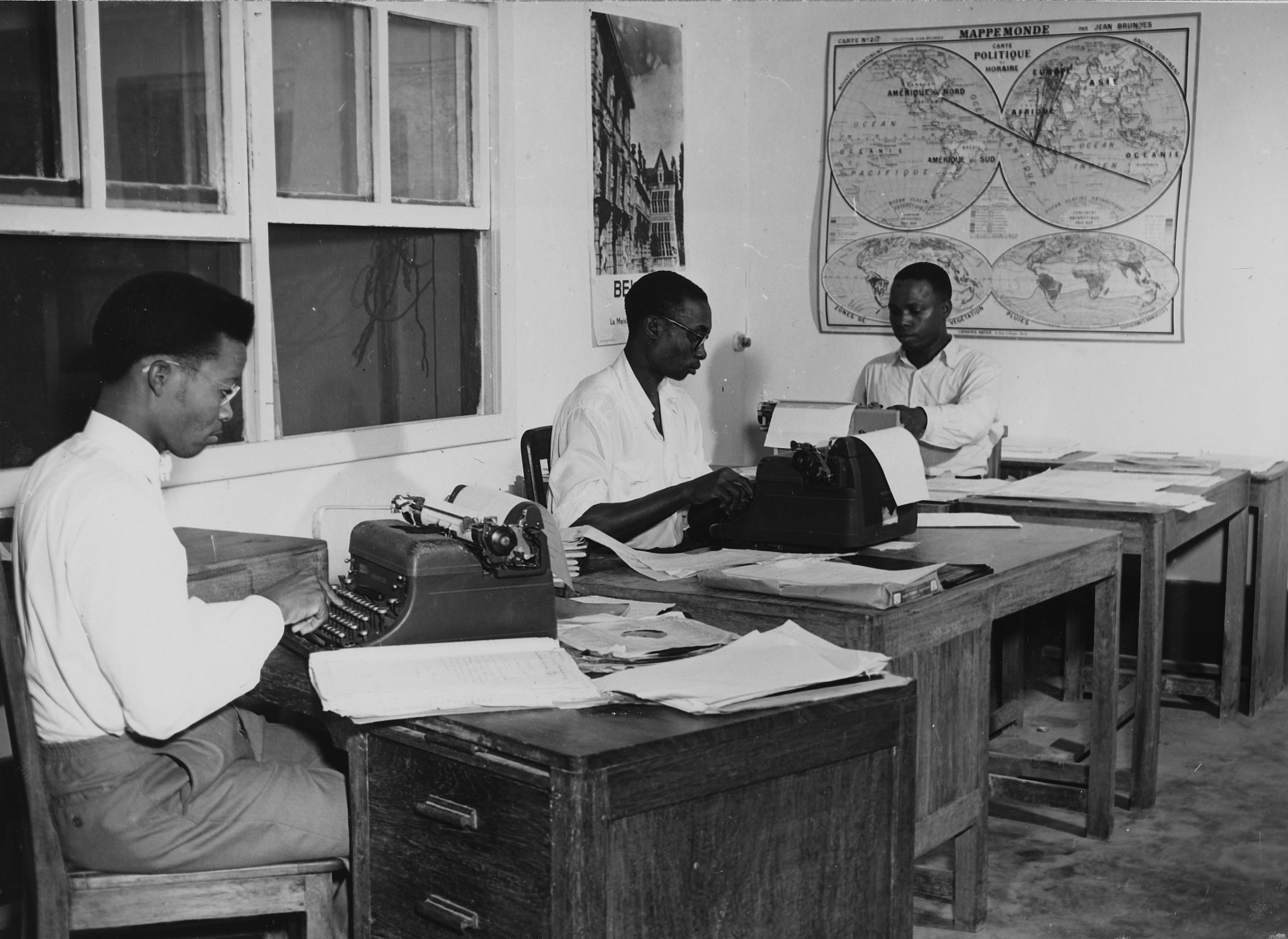 Le Congo connaît un formidable développement économique à partir de 1940, ce qu’on a appelé l’« effort de guerre ». Cet élan se poursuit ensuite avec une politique de grands travaux et d’infrastructures. Le résultat est qu’à la fin des années 1950, 40 % des hommes congolais sont salariés. Ce chiffre est très élevé, car il s’agit, et de loin, du pourcentage le plus haut de toute l’Afrique subsaharienne ! Parmi eux, des ouvriers et des ouvrières, mais aussi des lettré.e.s, des instruit.e.s, des employé.e.s administratifs, des assistant.e.s médicaux, des enseignant.e.s, qui lisent, écrivent, s’informent, échangent entre eux, ceux que les Blancs et les Noirs ensuite appellent les « évolué.e.s ». Et contrairement à ce que pense la grande majorité du monde colonial, c’est une population déracinée : ces évolué.e.s constituent en fait une nouvelle classe sociale.[5]