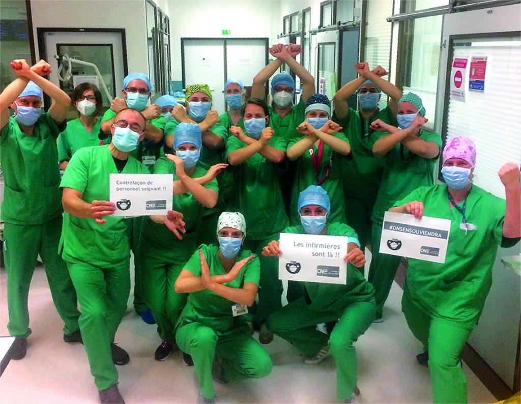 La crise sanitaire remet en exergue toutes les difficultés rencontrées par le secteur des soins de santé. Les nombreux témoignages parvenus à la CNE sont entendus. Le confinement n’est pas un temps d’arrêt dans l’action menée par les permanents régionaux et nationaux de la centrale. Pour Laure, « ils nous ont bien défendus. Ils sont passés plusieurs fois à la télévision pour crier notre désarroi, pour que le peuple se rende compte des conditions de travail. »[15]